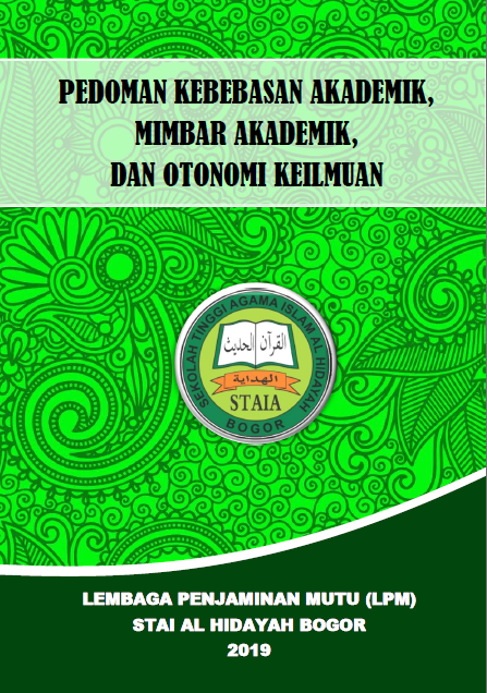 Pedoman STAI Al-Hidayah Bogor Tata Pamong Renstra STAIA 2023-2028 Renstra STAIA 2019-2023 STATUTA STAIA 2019-2023 RIP STAIA 2019-2039 Pedoman Kerjasama Monitoring dan Evaluasi Renstra LPM 2023 Pedoman Monitoring dan Evaluasi Kinerja Tenaga Kependidikan Pedoman Monev Dosen dan Tendik Panduan Monitoring Dan Evaluasi Kurikulum Dan Pembelajaran Pedoman Penyusunan Penetapan dan Implementasi Visi, Misi, Tujuan dan Strategi Kemahasiswaan Panduan Penerimaan Mahasiswa Baru Pedoman Pemilihan Mahasiswa Berprestasi Pedoman Pemberian Penghargaan Prestasi Mahasiswa Pedoman Organisasi Mahasiswa Sumber Daya Manusia Pedoman Pencalonan dan Pemilihan Ketua Sekolah Tinggi Pedoman Tupoksi Struktur STAIA 2019-2023 Pedoman BKD Pedoman Pemilihan Tenaga Kependidikan Teladan 2020 Pedoman Pemilihan Dosen Teladan 2020 Peraturan Pegawai STAIA 2019-2023 Keuangan dan Sarana Prasarana Sistem Pengelolaan Dana Pedoman Pengelolaan Sarana dan Prasarana Pendidikan Pedoman Penilaian Pembelajaran Pedoman Microleading Buku Pedoman Akademik;Kalender Akademik;Buku Pedoman MBKM;Buku Pedoman KKM;Buku Bimbingan Akademik;Buku Pedoman Skripsi;Buku Pedoman PPL;Buku Pedoman Penilaian Pembelajaran.Dokumen berikut berada di website akadimik staia, jika ingin tahu info lebih lanjut silahkan kunjungi situs tersebut. Klik disini! Suasana Akademik dan Otonomi Keilmuan Kode Etik Mahasiswa Pedoman Pengembangan Suasana Akademik Pedoman Perilaku Bagi Dosen, Karyawan dan Mahasiswa Pedoman Kebebasan Akademik, Mimbar Akademik, dan Otonomi Keilmuan Penelitian Panduan Penelitian;Kebijakan Publikasi Ilmiah;Rencana Strategis Penelitian;Dokumen berikut berada di website LPPM staia, jika ingin tahu info lebih lanjut silahkan kunjungi situs tersebut. Klik disini! Pengabdian Kepada Masyarakat Pedoman Pengabdian kepada Masyarakat;Roadmap Penelitian dan PkM.Dokumen berikut berada di website LPPM staia, jika ingin tahu info lebih lanjut silahkan kunjungi situs tersebut. Klik disini!